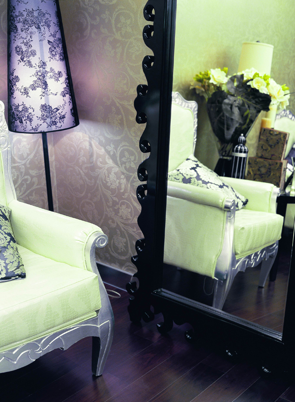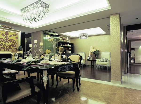 在設計上,墻面大面積的使用了古典歐式色彩的壁紙配合經過提煉的歐式線條,使歐式不再是遙遠的過去,而是鮮活時尚的品味象征。減掉了復雜的歐式護墻板使用了提煉過的石膏線勾勒出線框,把護墻板的形式簡化到極致。