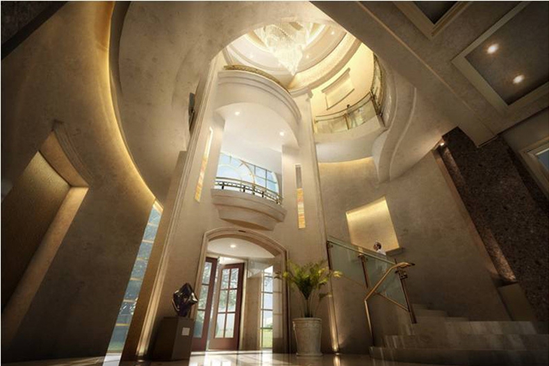 閔行御濤園別墅裝修設計:御濤園項目占地約26萬平方米,建筑面積約4.5萬平方米。0.175的超低容積率組成的192棟獨幢別墅,是整個馬橋區域中規模最大水景獨幢別墅社區。共有6類面積在300平方米—650平方米之間的不同戶型設計。別墅擁有6米雙層挑空客廳,部分別墅還特設了私人電梯,每幢別墅的外墻均鋪砌石材。
